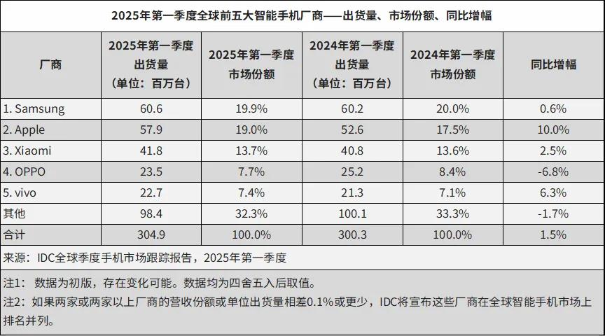 从市场数据看,IDC2025年一季度数据显示,OPPO全球出货量2350万台,市场份额7.7%,排名第四,增长势头下降严重,后面第三季度甚至跌出前五。