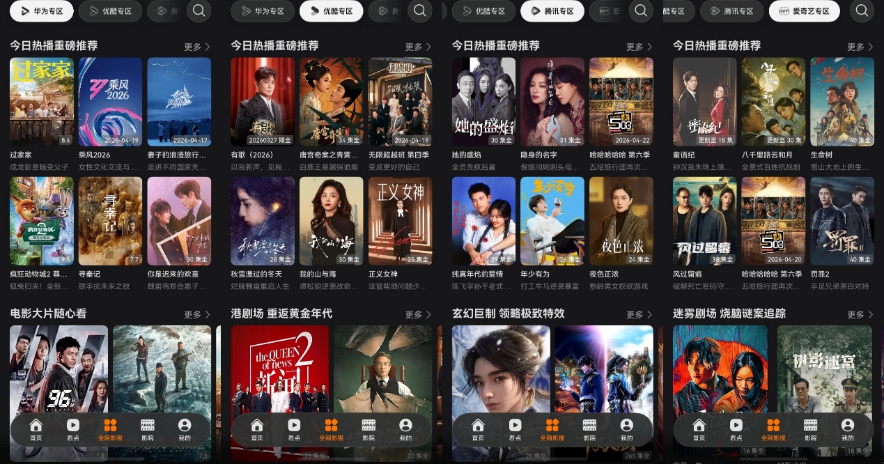 硬件打底,再搭配华为视频的软实力,追剧观影体验更是直接起飞!大家平时追剧最头疼的,莫过于想看的节目散落在各个平台,找个剧集得在N个App来回切。而华为视频聚合了优酷、腾讯视频、爱奇艺和芒果TV这些平台的热门内容。只要在一个App里,就能看遍全网首播的爆款影剧综。