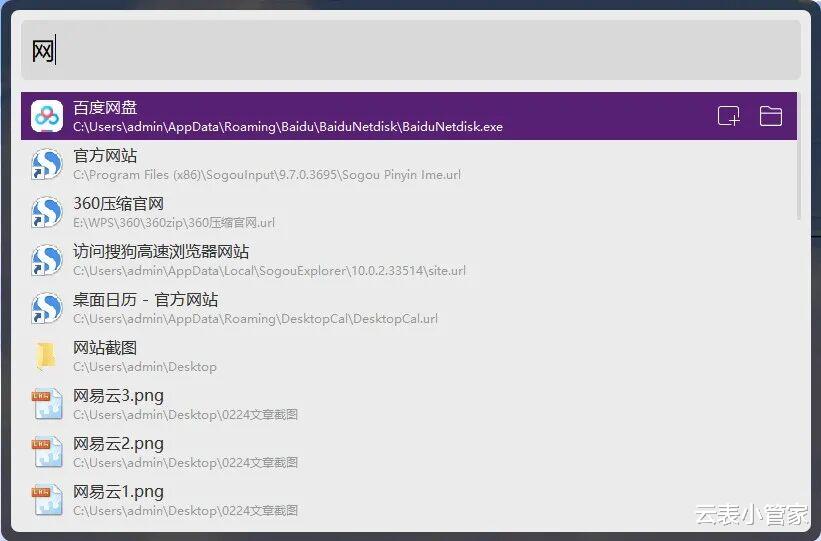 双击Ctrl键唤醒,界面简洁得像macOS的Spotlight。想搜文件?打字就行,速度跟Everything差不多快。想打开常用软件?输几个字母就启动了。最绝的是按Tab键,直接切换到网络搜索模式,不用打开浏览器就能搜百度、搜知乎。