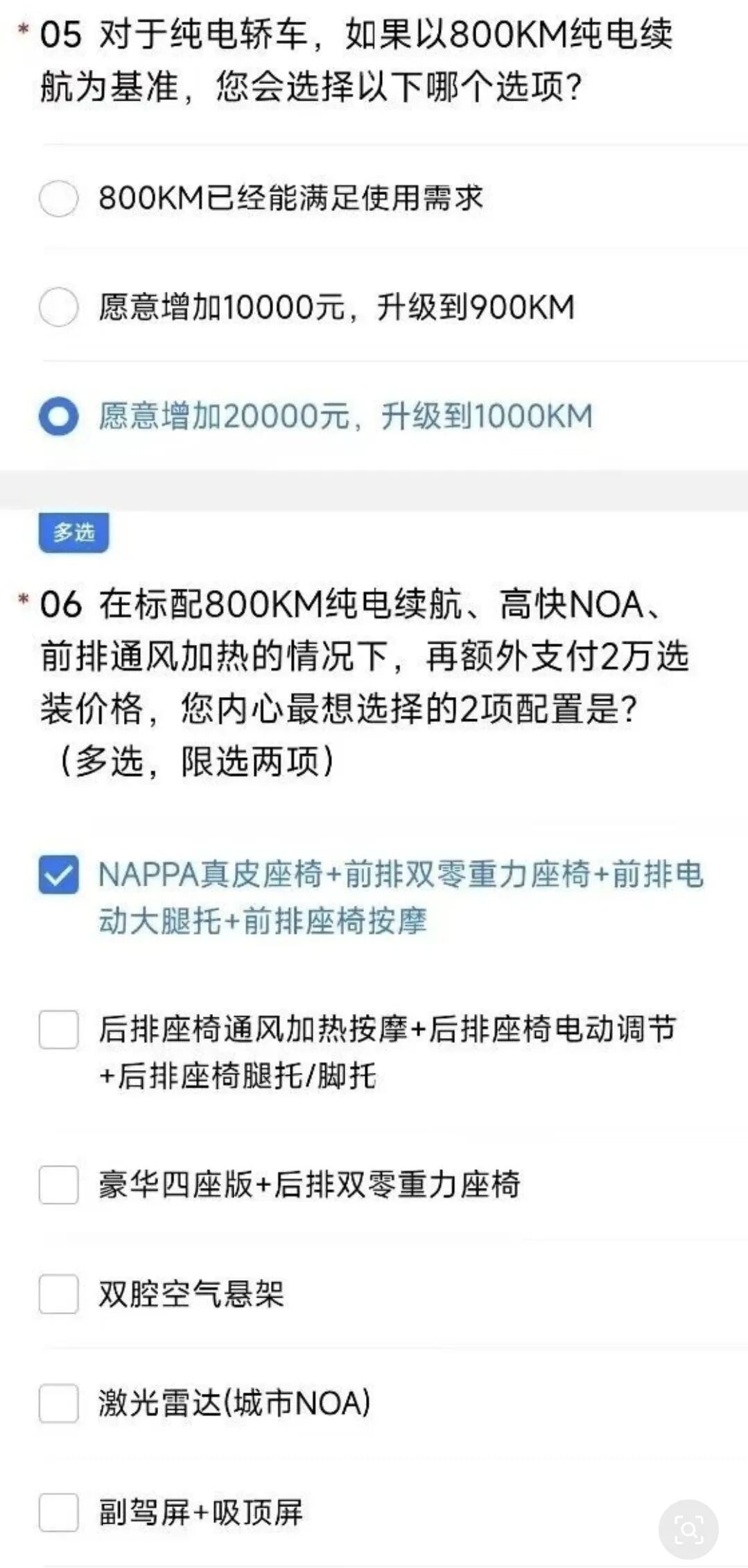 其实从这个问卷中,还有一些,基本上都是配置方面的加减法,但如果全部按照这些做,那么车的售价很可能去到35万级别了。