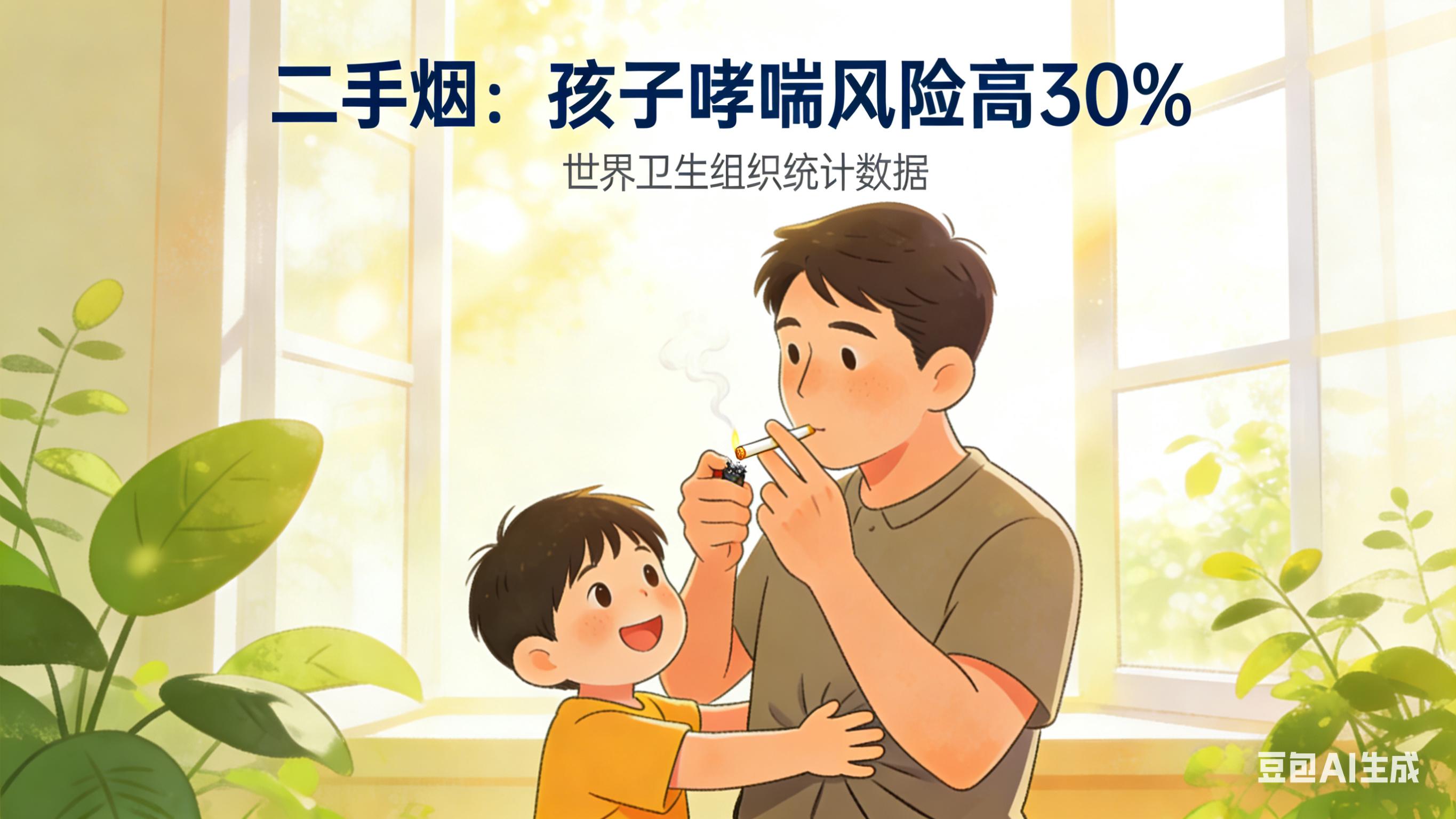我身边就有个朋友,父亲抽烟30年从未生病,可10岁的儿子却反复哮喘,医生明确告知:“长期吸入二手烟是主要诱因”,这才让他父亲下定决心戒烟。