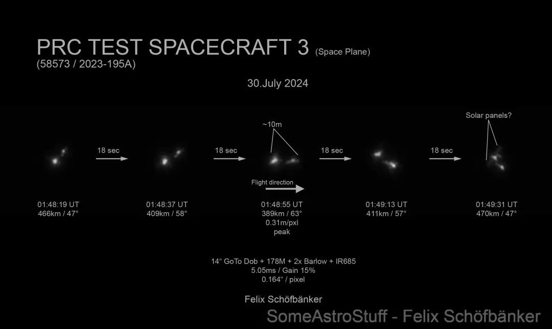 拍下这一图像的摄影师名叫菲利克斯·舍夫班克(Felix Schöfbänker),来自奥地利北部的上奥地利州,是一名资深天文观测者。舍夫班克称,他使用一台14寸天文望远镜和各种设备来跟踪卫星,并在当地时间7月30日早晨拍下了“中国太空飞机”的图像。