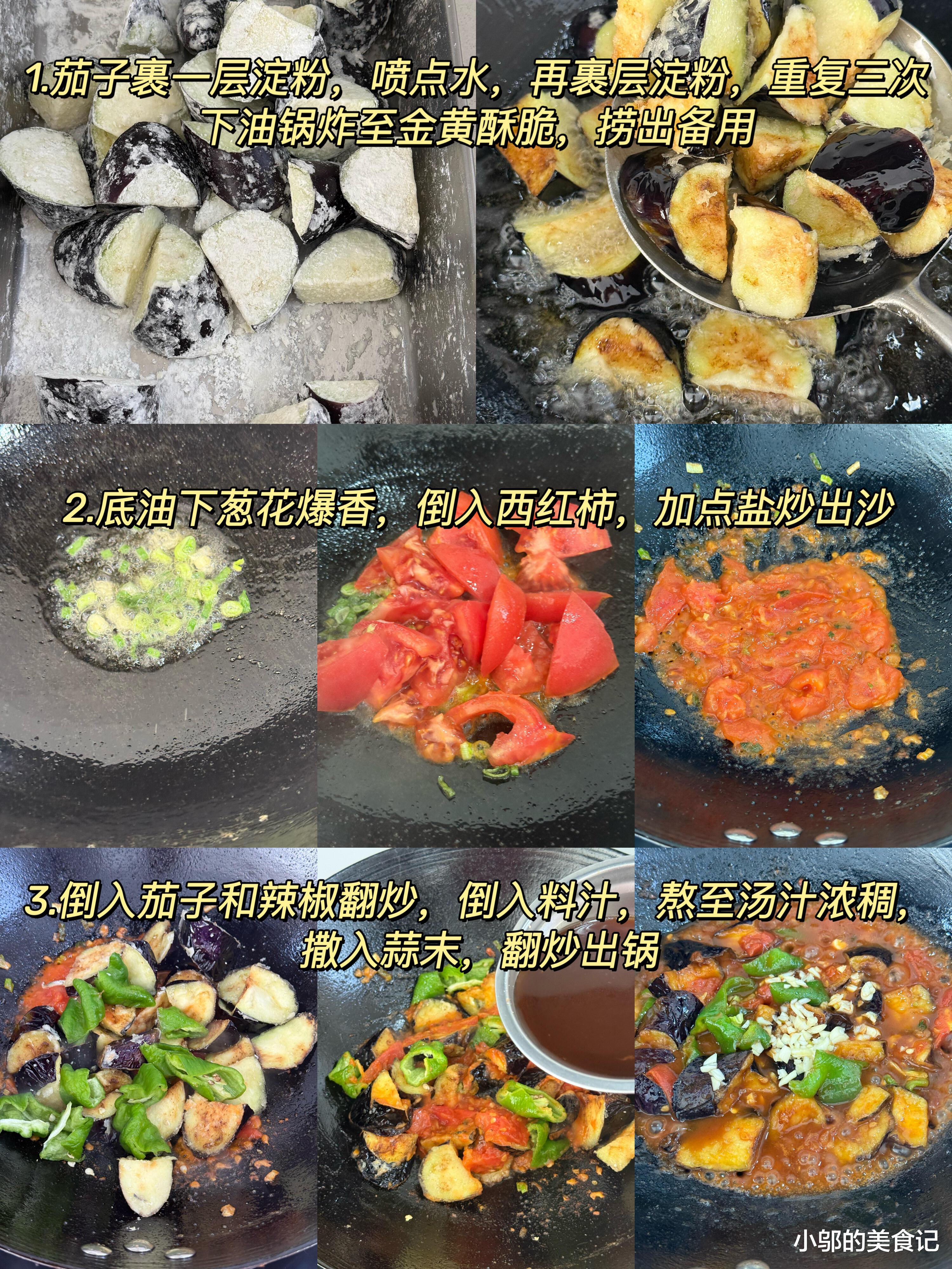 厨房里飘来西红柿炒出沙的酸甜香气,混合着油炸茄子的焦香,这大概是最能勾起食欲的味道了。茄子、辣椒、西红柿,这三样再普通不过的食材,凑在一起却能碰撞出令人惊艳的美味,尤其那浓稠的汤汁,拌着米饭吃能让人多添两碗。今天就来详细说说这道"下饭三剑客"的家常做法,从食材处理到火候掌握,每个步骤都藏着让味道升级的小技巧。