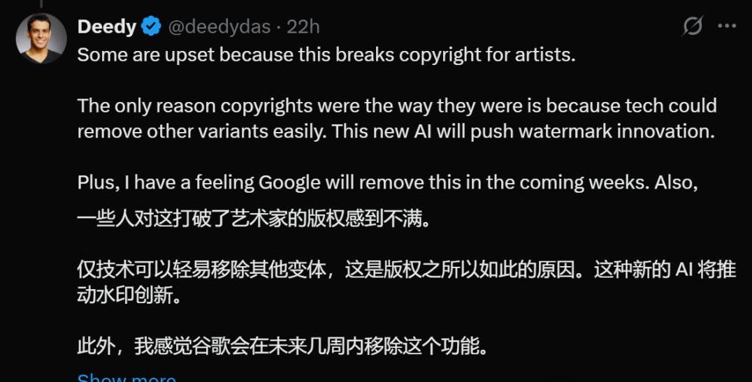 简单来说,它是谷歌最新推出的图像生成神器,可以对图像进行多种操作,只需输入简单的文字指令,就能完成去水印、合成新图等复杂的任务。