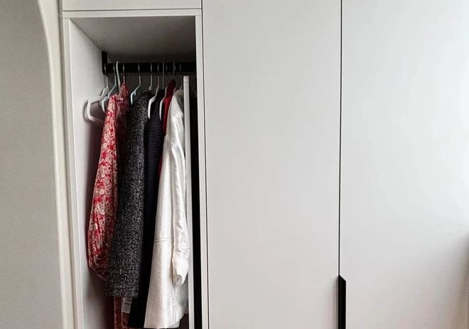 日常衣服的家:玄关柜设有个挂衣区,每天从外面回来脱下的衣服,就挂在上面。还有就是衣柜侧边挂衣区,都是可以收纳日常衣服的。