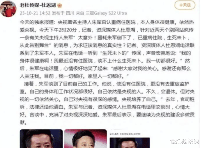 但就在10月21日下午,朱军却突然澄清自己目前健康状况良好。