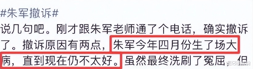 他说朱军其实是因为生了一场病,无力打官司才决定撤诉。