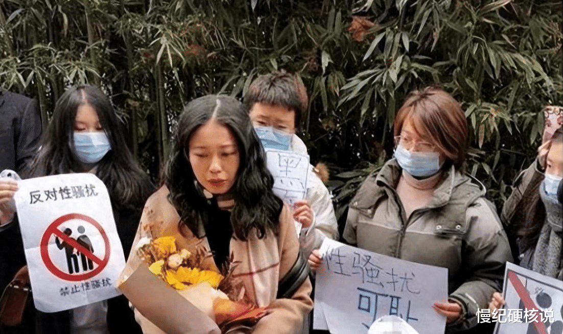 和一群女生抱团,拉横幅支持弦子要求惩罚朱军。