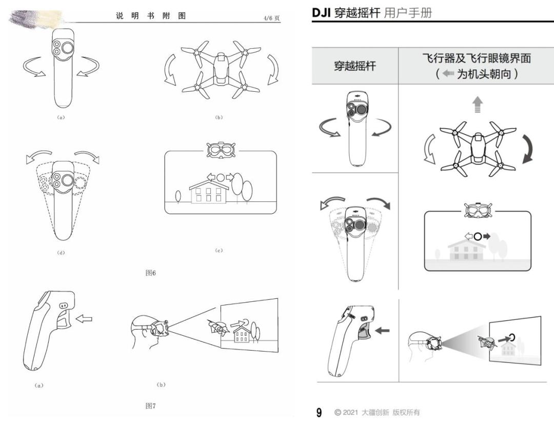 有无人机资深爱好者向记者透露,该项专利说明书中的多张附图,与大疆首代穿越摇杆用户手册中的部分附图高度相似。根据大疆官网信息,该用户手册发布于2021年3月。