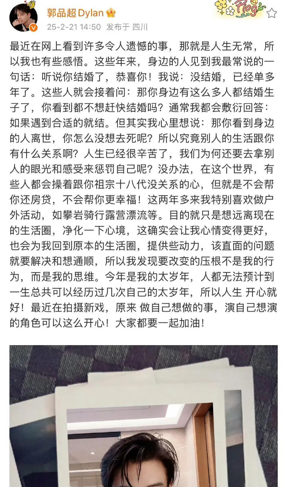 昨天,许久没露面的郭品超突然在社交平台上发了长文,承认和女友分手了!