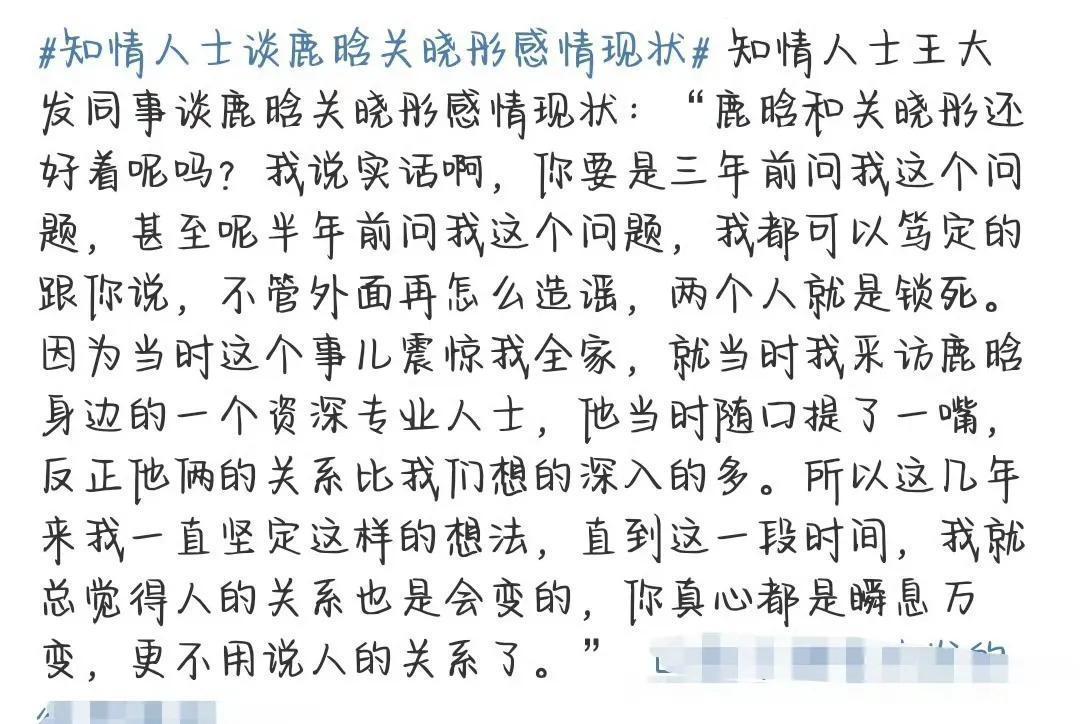 要说最近最让人操心的,还得是鹿晗和关晓彤这对。
