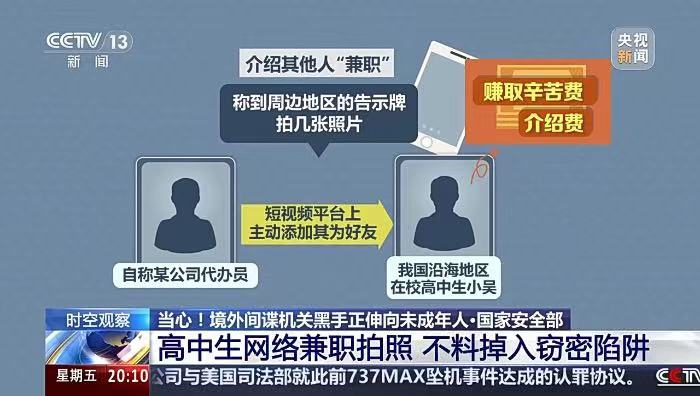 2. 网络防范意识不足:未成年人常年活跃在各大网络社交平台,由于防范心理不强,言谈之间很容易暴露自己的身份和学习生活情况,易被境外间谍锁定目标。