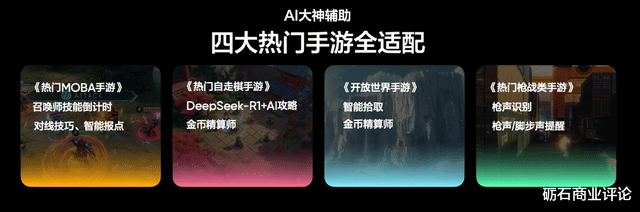 真我GT7全新升级的AI大神辅助,除支持《王者荣耀》《金铲铲之战》《原神》等主流手游外,还支持《和平精英》枪声识别功能,助力玩家轻松"吃鸡"。超神一键连招、游戏4D振感、游戏专属内存Pro等功能,同样一应俱全。