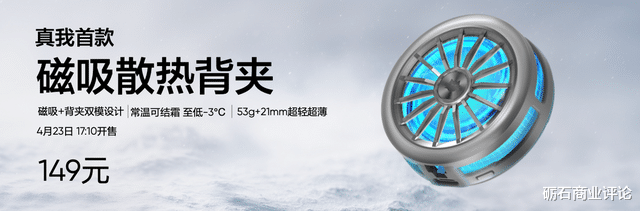 另外,真我还为手游玩家设计了两款冰感搭档:真我首款磁吸散热背夹,21mm+53g的轻薄一体化机身,售价149元;真我GT7冰感散热手机壳,让手机散热更快信号更强,首销价49元。