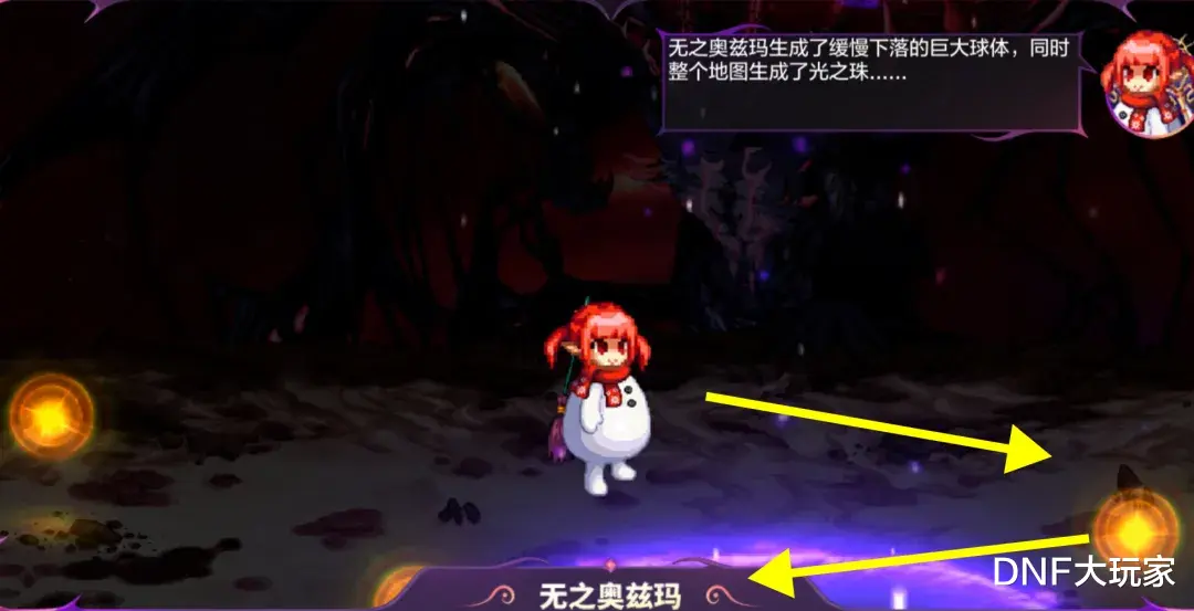 在屏幕两边各出现一个“黑暗球”,Boss无敌,同样是跑过去打掉“黑球”,就能继续输出了。