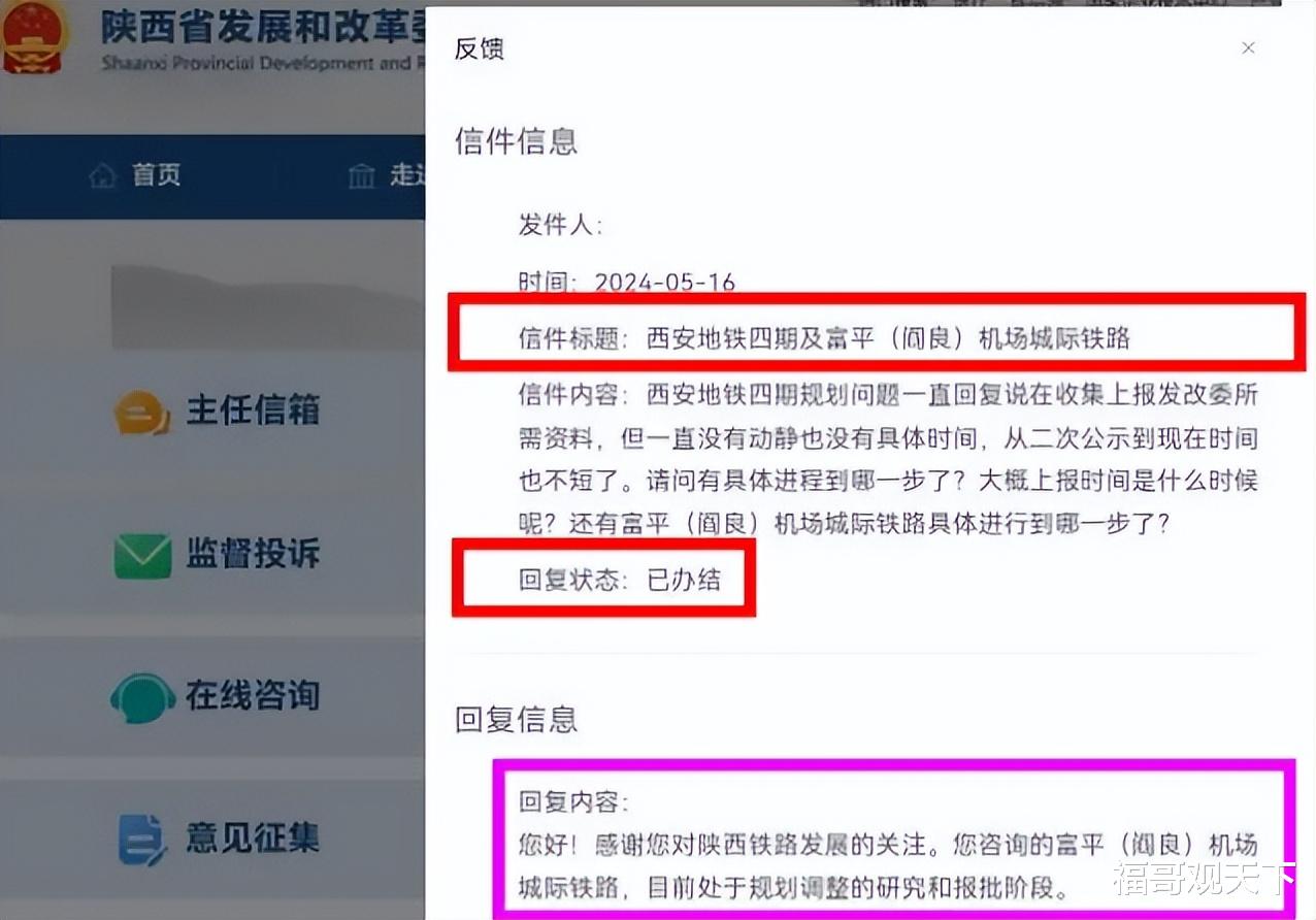 最近,有网友继续咨询西安地铁四期以及机场城际铁路线,最新的回复仍然处于规划调整研究和报批阶段