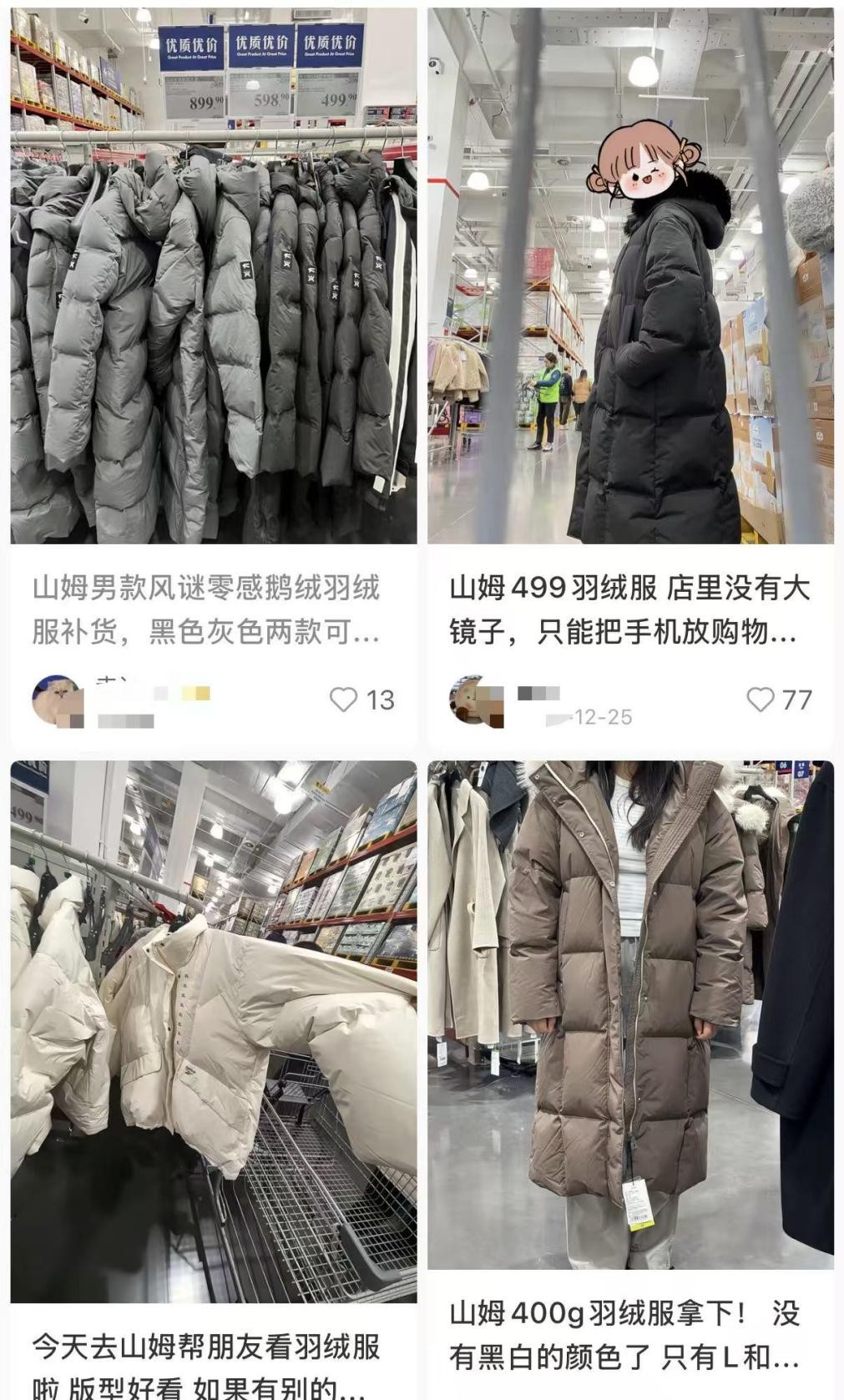 山姆那件499元的羽绒服,在好多城市直接卖断了货,甚至有人在二手平台上加价求购;还有胖东来580元的“大被子”羽绒服、Costco三百多的短款,都成了今年冬天的“顶流”。