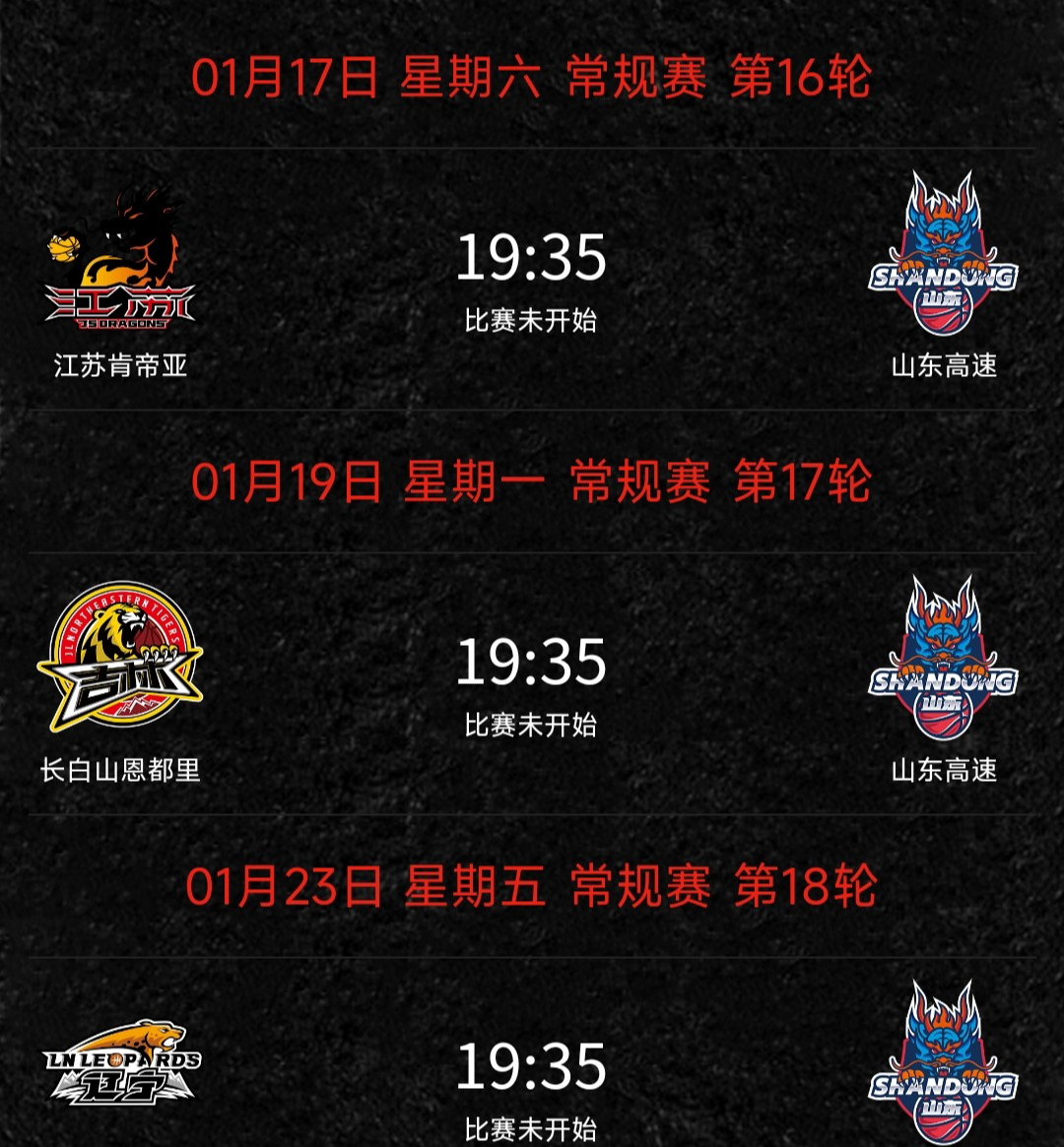 接下来山东男篮要带着八连胜的战绩开启三连客之旅,1月17日客场对阵江苏肯帝亚男篮,1月19日客场对阵吉林男篮,1月23日客场对阵辽宁男篮。希望三连客之旅,能让山东男篮的连胜场次来到两位数,1月25日山东男篮开启济南主场时间,首场比赛面对浙江广厦男篮。