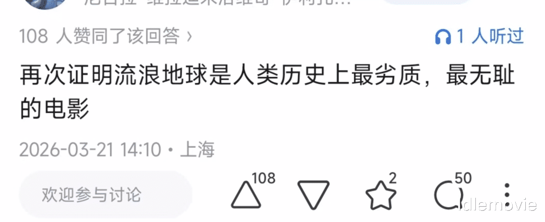 甚至给《流浪地球2》扣上人类历史上最无耻、最劣质的电影的帽子,怎么能恨成这样。