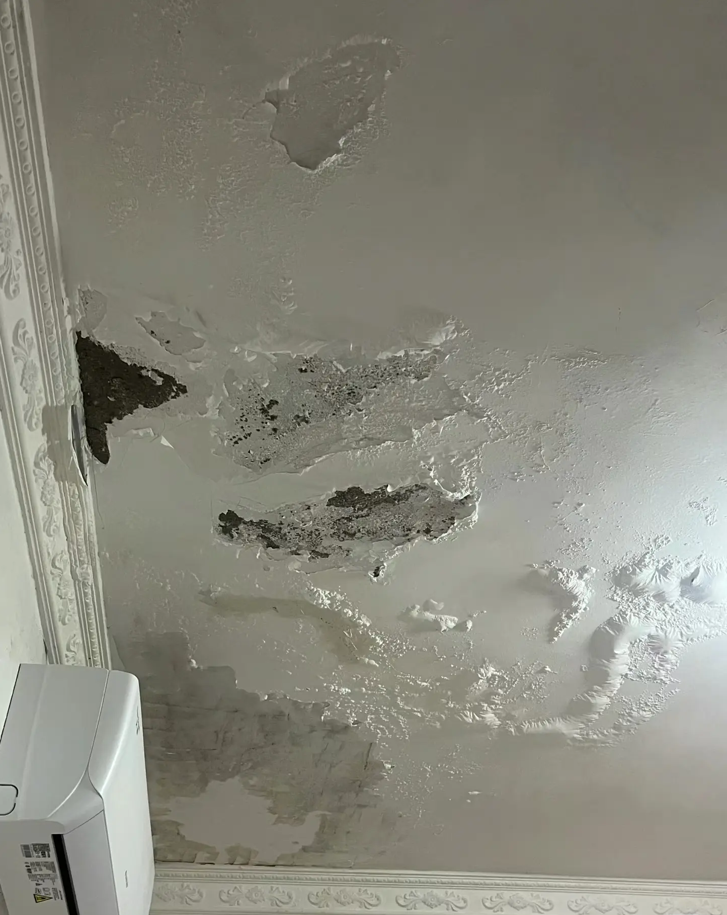 这时候最让人崩溃的事情发生了——水会在卷材和水泥顶面之间的空隙里到处流窜(行话叫“串水”)。你看着是客厅天花板在滴水,其实屋顶上真正的漏水窟窿,可能在十米开外的卧室正上方!到时候想找漏水点,比登天还难,往往只能全部掀了重做。