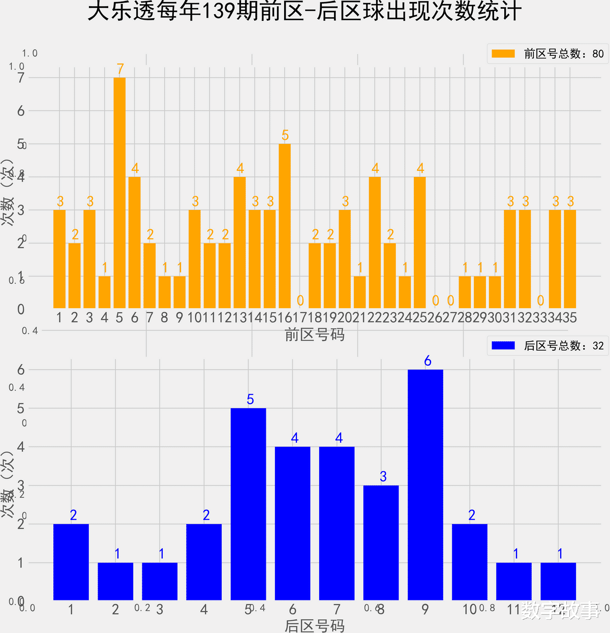 统计每年138期的样本数据: 80个前区号 32个后区号