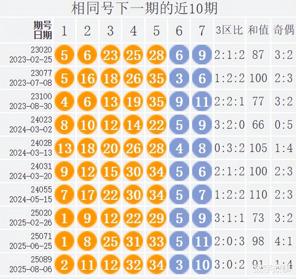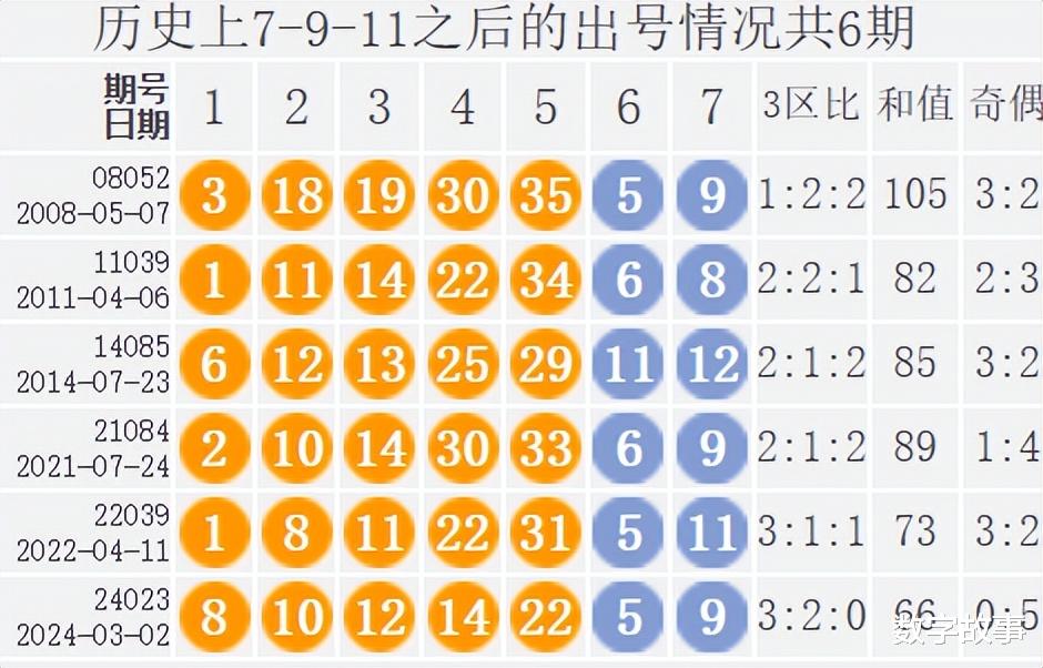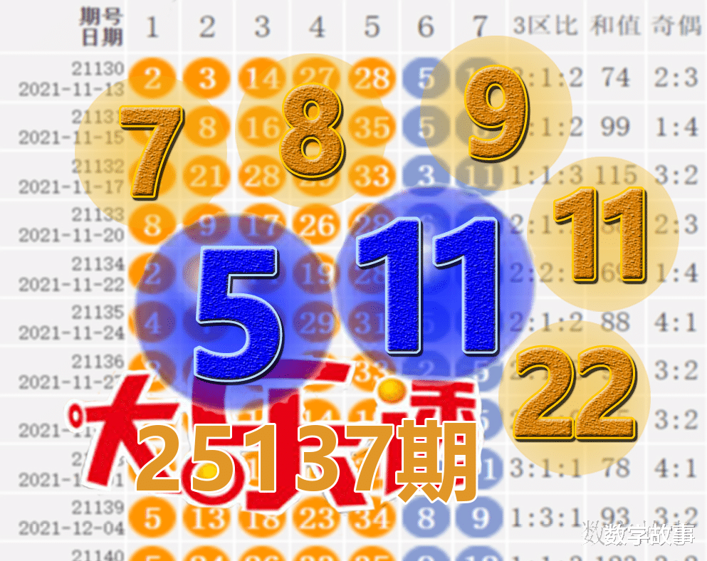 文末有大乐透前区号等差数7-9-11, 三连号7-8-9的历史统计。【体彩大乐透25137期开奖结果及统计】前区号组合历史上有2期四球相同,后区5-11中断48期遗漏;7注一等奖,奖池7.850亿。