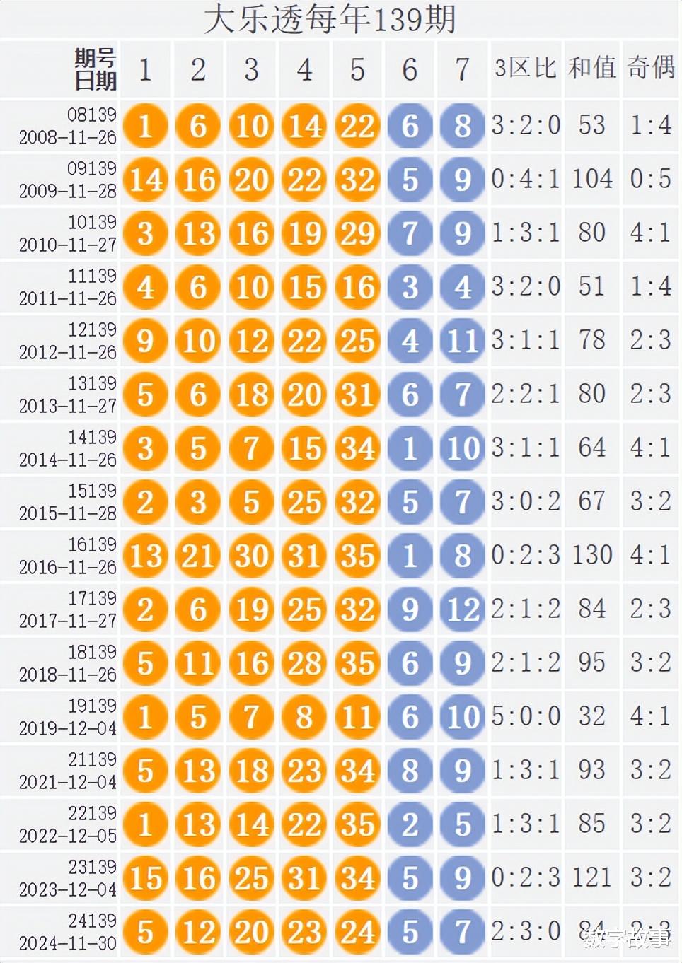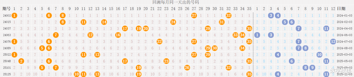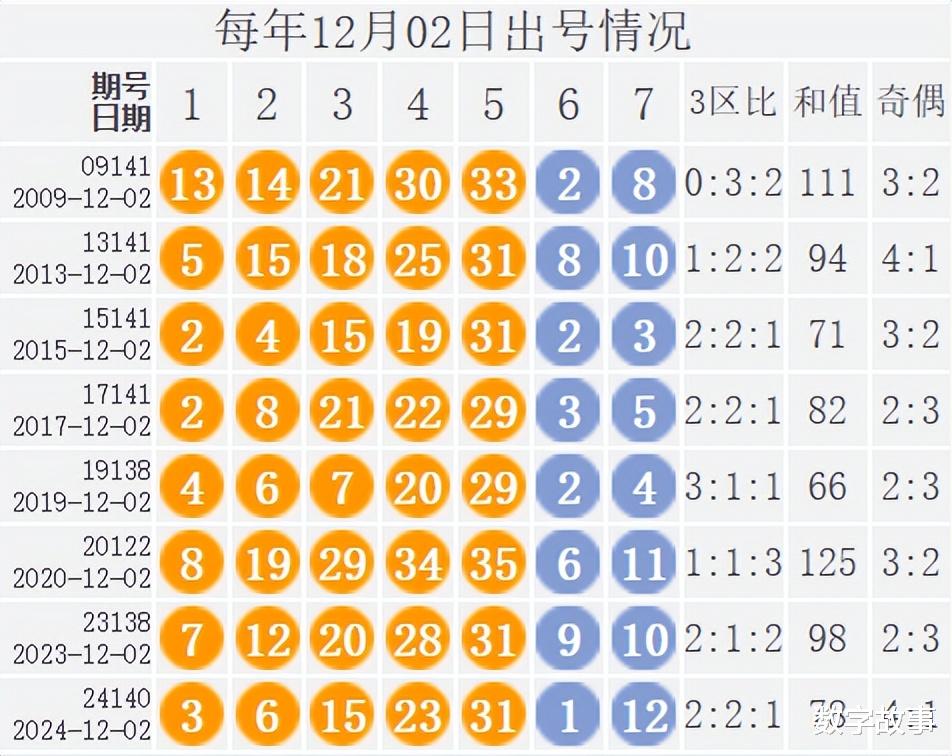 【其他历史数据查询统计】大乐透历史上的今天2025-12-02 星期二 大乐透不开奖每年12月02日出号情况: