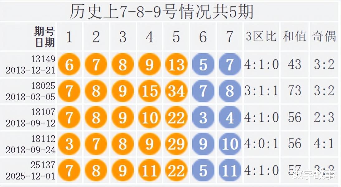 大乐透25137期前区号在过去是否出现过?大乐透25137期前区号: 7-8-9-11-22经查,历史上没有出现过与这一期5个前区号一样的,4个前区号一样的有2期,如下: