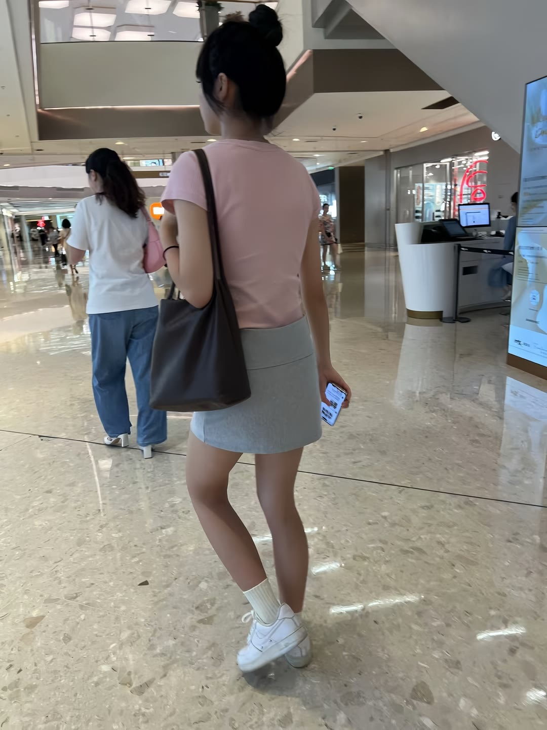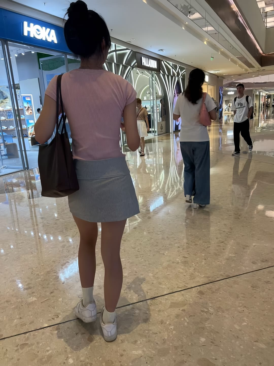 “粉色T恤 + 灰色A字裙”,青春活力,春天就要这样穿!