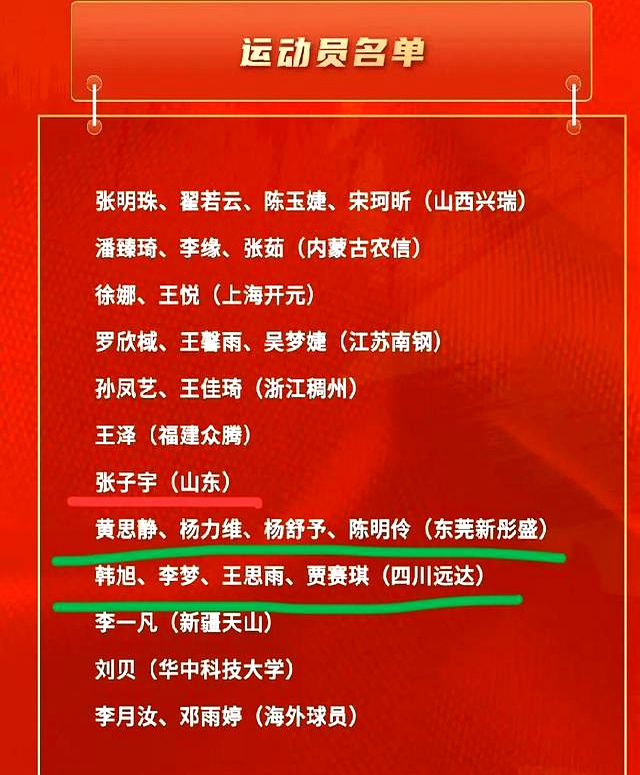 四川那边,韩旭、李梦、王思雨、贾赛琪,也都在名单里。