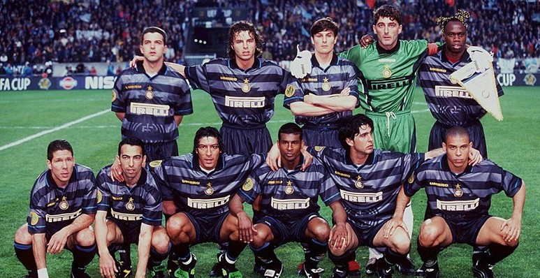 03 现象级球队:1997/98赛季的国际米兰选择国米在1990年代的最佳赛季很简单,只有1997/98赛季,他们真正踢出了统治级足球。虽然最终只获得联赛亚军和联盟杯冠军,但那支球队的传奇色彩不亚于后来的三冠王。