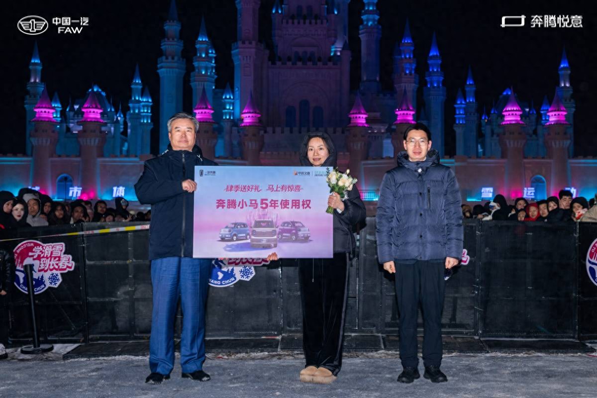 此次一汽奔腾深度联动长春文旅,不仅为市民和游客送上了一份新春厚礼,有力支持了本土冰雪文化的发展,更彰显了作为央企的责任与担当。活动自启幕便备受瞩目,低门槛参与方式让福利触手可及,成为吸引众人、造就超高人气的关键。2月3日首轮抽奖诞生幸运儿并现场交车,3月3日终极抽奖盛典则将氛围推向高潮,幸运儿喜提奔腾小马5年使用权,双重幸运圆满落地,现场欢呼不断。