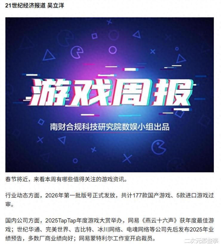 2026 年的游戏圈刚开年就热闹非凡:谷歌 Genie3 的发布让行业陷入 “AI 生成游戏” 的讨论热潮,Unity 等引擎厂商股价波动,1 月 25 日 182 款游戏版号集中过审更让厂商竞争进入白热化。
