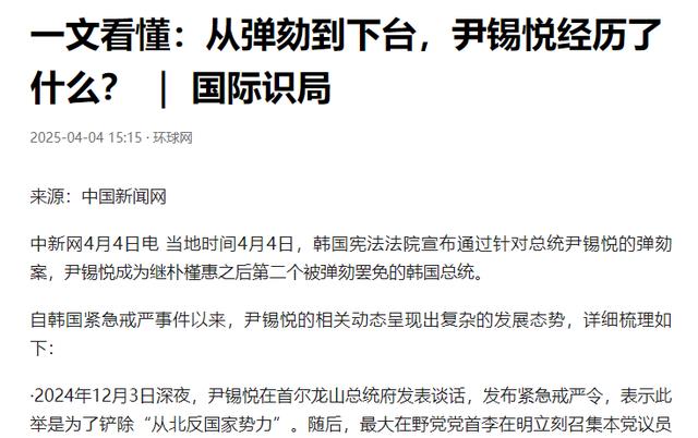 经过一系列波折,国会先是暂停了他的总统职权,宪法法院经过110多天的审理,最终在今年4月宣布通过弹劾案,尹锡悦被正式罢免,成为韩国历史上第二位被弹劾下台的总统。