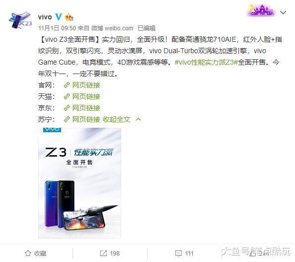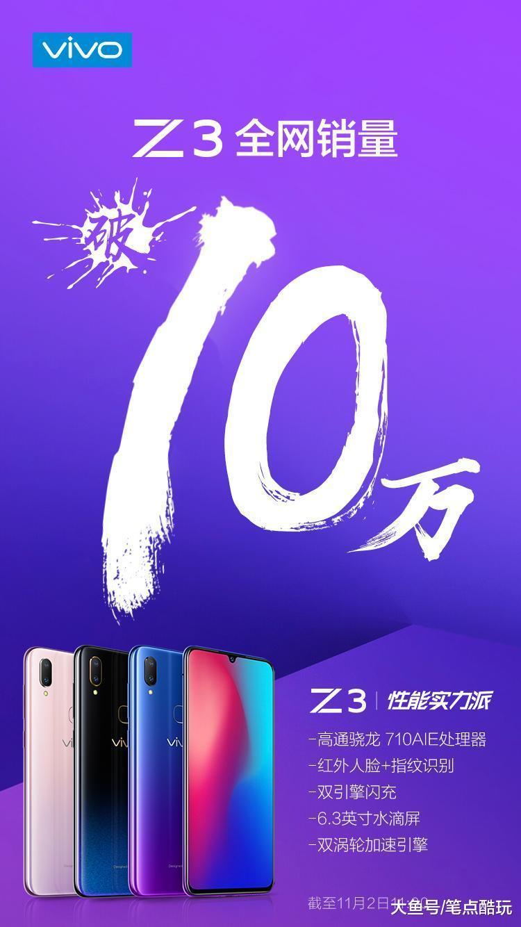 #vivo Z3# 颜值名义,性能实力,vivo Z3 11月1日开售当日全网怒卖10万台,京东苏宁天猫三大电商平台均顺利拿下销量、销售额的冠军,“六冠王”可不是盖的!你买了吗?