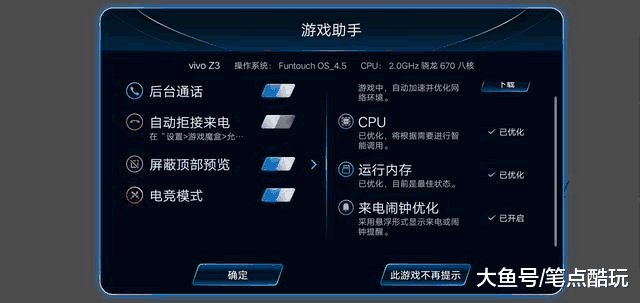 #vivo Z3# 简单上手测试游戏性能,vivo Z3“游戏魔盒”功能令人印象深刻,丰富的控制选项给手游玩家最大的辅助。骁龙710 AIE芯片+6+128GB内存与全新的Dual-Turbo双涡轮加速引擎实现CPU+GPU双加速,游戏不卡顿无掉帧。总之,能以千元预算拿下这款手游奇兵,个人觉得很值。