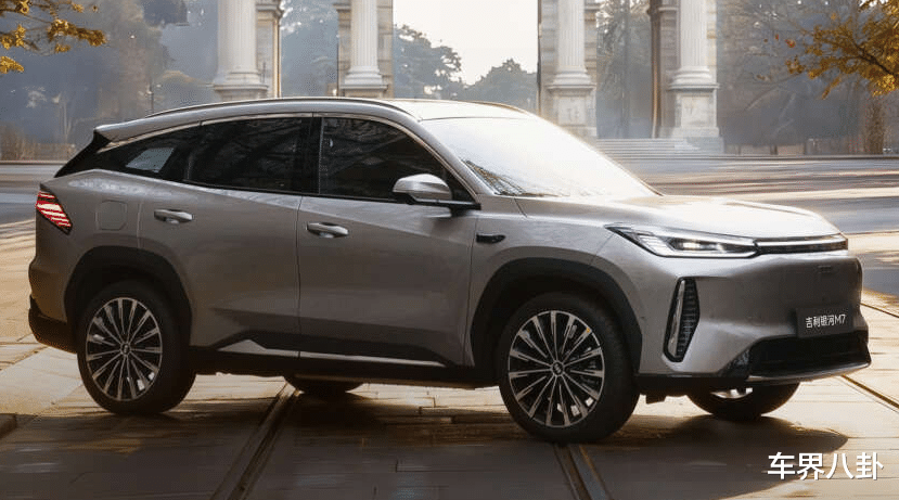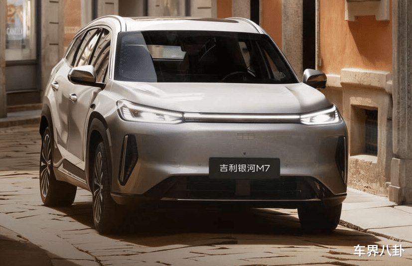 但把车标盖住,这不就是银河L7吗?别看名字从L变成了M,好像换了个辈分,实际上就是L7的改款,或者说是换了一套混动逻辑的“续航版”L7。