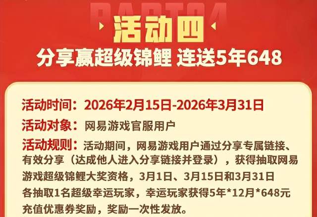 最最最重磅的是锦鲤抽奖活动,大家分享链接就能参与,抽1人送5年每月648r充值券,相当于未来五年时装随便买、新款随便冲,彻底告别纠结,想想都爽到爆炸!