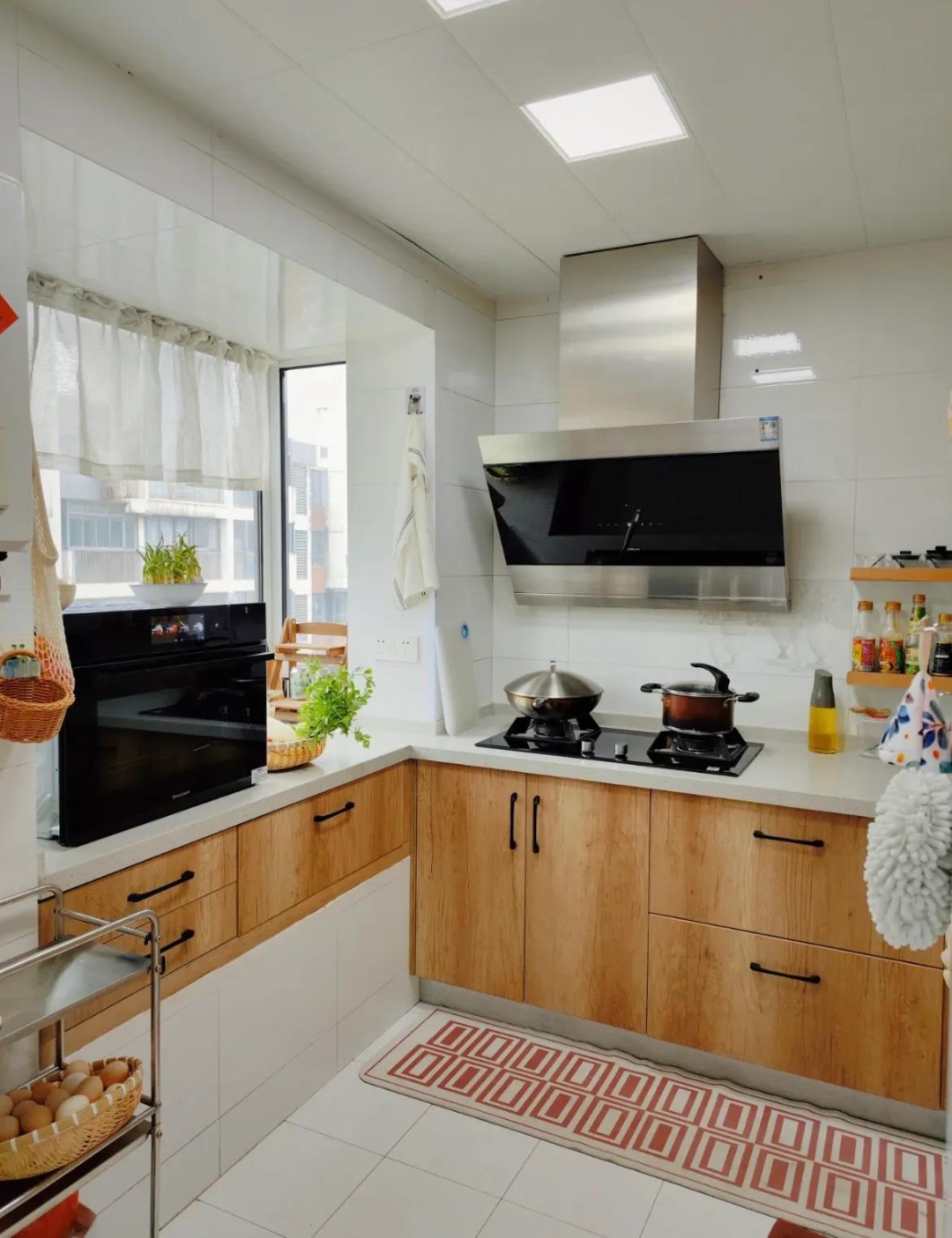 屋主在翻新过程中,很大程度上保留了老房的装修风格,并融入了一家人喜爱的元素。如今,他们已在此居住了五年,家中每天都保持着明亮整洁、井然有序的状态。这种干净利落的环境,让原本略显“老气”的家焕发出别样的光彩,散发出一种亲切而温暖的韵味,屋主笑称此为“外婆风”。