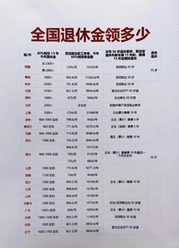 实在不想算的伙伴们,可以看看2024年最新的全国退休金领取金额和要求,都整理好啦,表格自查哦~