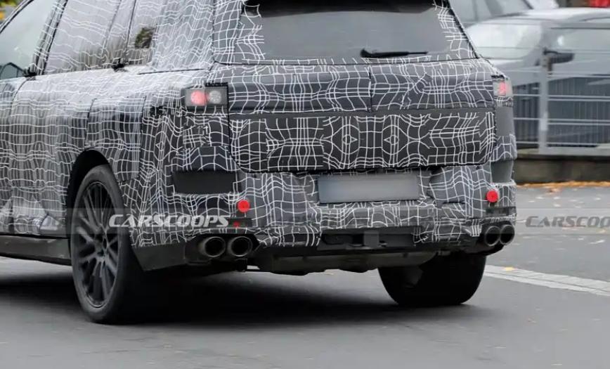 非常明显的是,谍照排气管采用了双边四处的设计,这意味着宝马X7不仅仅是一款燃油车,而且必然有着巨大排量和强悍的动力输出。