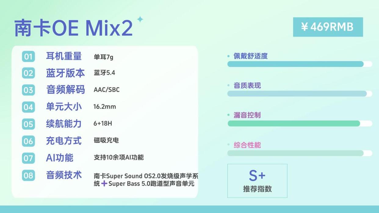 蓝牙耳机什么牌子性价比高?1.南卡OE Mix2