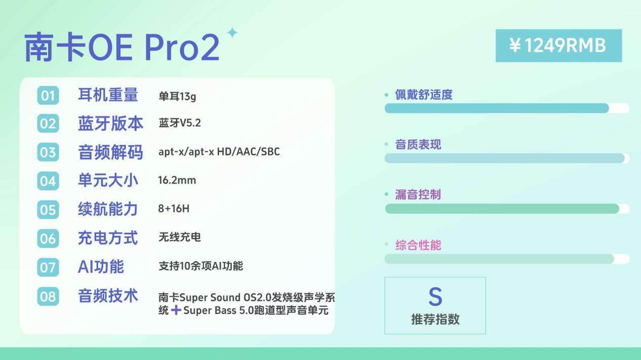 配置方面,南卡OE Pro2采用高性能高通蓝牙芯片,支持AptX HD高清信号传输,在保障高速稳定连接的同时,进一步提升声音还原清晰度,实现60ms超低延迟表现。充电仓可为整机提供长达25小时的续航支持,使该机型在便携性、高性能与耐用性上均展现出色实力,成为追求极致使用体验用户的优选机型,对于预算充足的消费者而言,可直接放心选购。