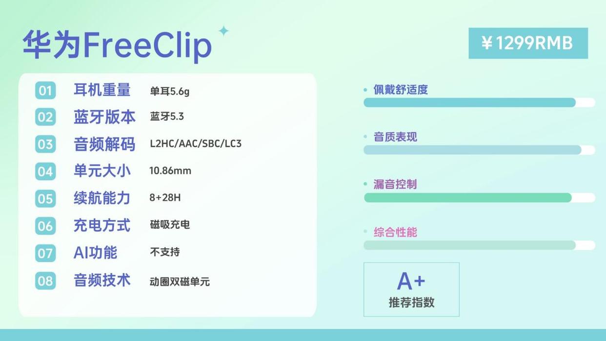 音质表现上,FreeClip搭载了10.8mm双磁路发声单元,融入华为自研空间音频技术与头部追踪功能,可实现小于1°的精准动态校准。无论是观看影视大片还是聆听音乐,声场都会随着头部转动自动适配调整,为用户营造出极强的沉浸式音效体验。