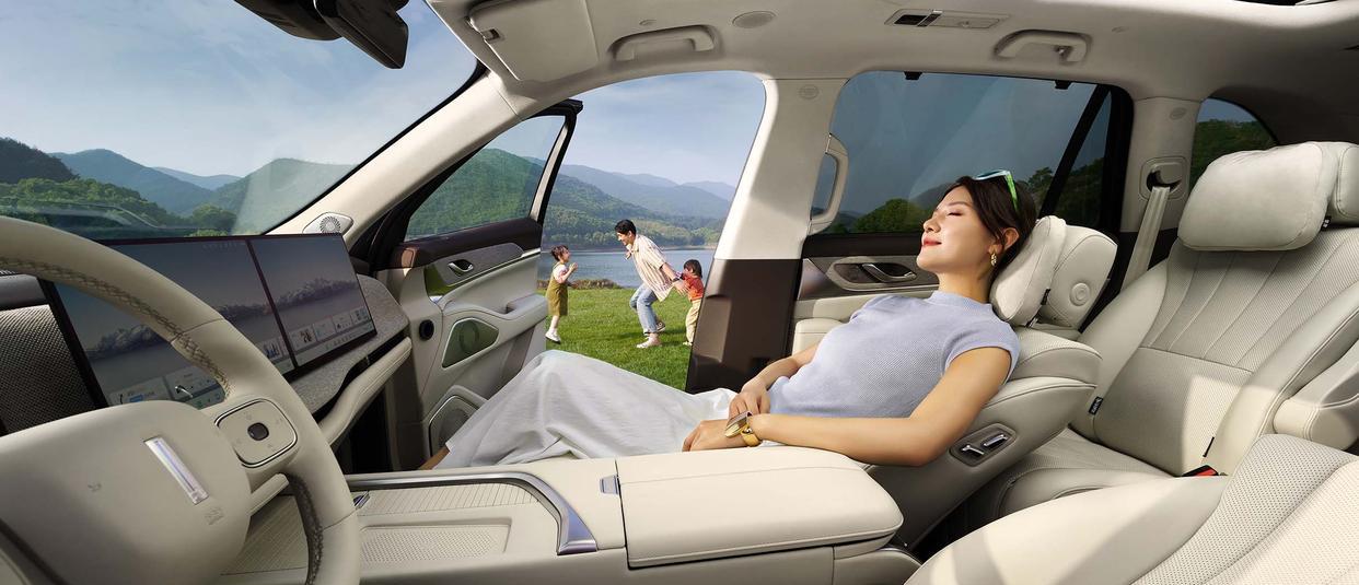尺寸上,蓝山焕新版的长宽高是5156毫米、1980毫米和1805毫米,轴距3050毫米,提供了标准的“2+2+2”六座布局。空间上,这种配置意味着无论是前排、中排还是第三排,乘客都能享受到相对宽敞的坐姿体验。尤其第二排,新增的后排吸顶大屏以及带有按摩、加热和通风功能的独立座椅,还配备了小桌板、车载冰箱等,消费者常说的“冰箱彩电大沙发”概念,这款车基本上已经具备了。至于副驾驶座,蓝山还装配了零重力座椅,这可是调节成类似于航空头等舱躺靠角度的座椅,对于长时间开车的驾驶员来说,是足够体贴和有吸引力的。