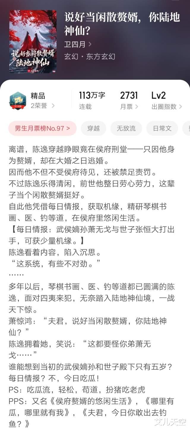 2、《说好当闲散赘婿,你陆地神仙?》113万字突破万订