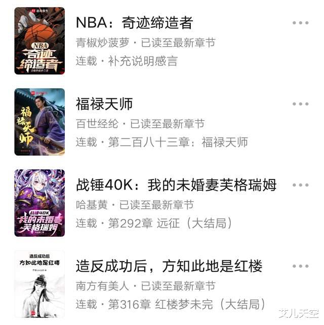 另外除了这本斩神魔,青椒炒菠萝的《NBA:奇迹缔造者》、百世经纶的《福禄天师》等作品也都完结了。