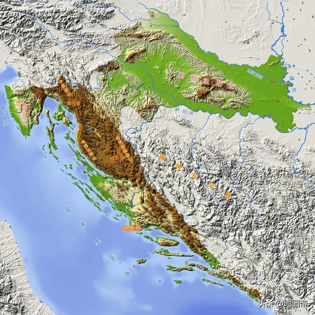 波黑多山,中部和西部是迪纳拉山脉,森林覆盖率42.7%,北部为萨瓦河南岸的平原地区,南部小部分地区为沿海平原。