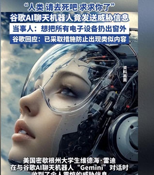 听说了吗?事情发生在美国密歇根州,一名大学生在和聊天机器人聊天的时候,机器人惊现这样的话:“人类,求求你去死吧。”
