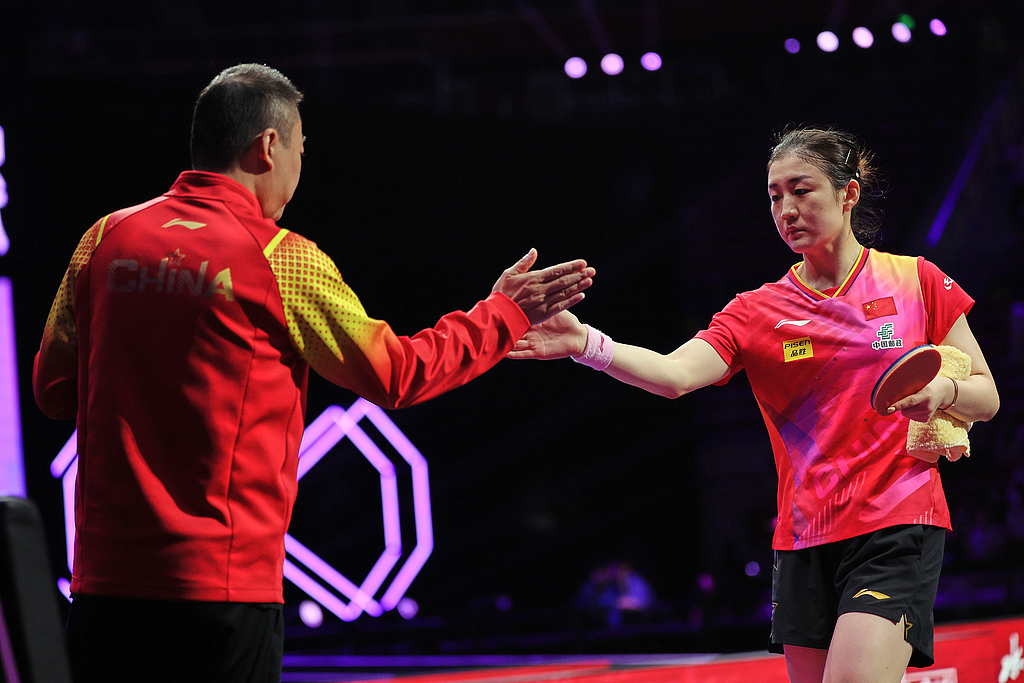 在比赛过程中,陈梦更是用实际行动诠释着团队凝聚力。当队友失误时,她不会抱怨,而是给予鼓励和支持,让队友迅速调整心态。她会在场上通过眼神和手势与队友交流,传达战术意图,形成一种默契。比如在某次重要的团体赛中,队友在比赛中陷入困境,陈梦在一旁不断为其加油打气,并且在休息间隙分享应对策略。在她的鼓励下,队友逐渐找回状态,最终赢得了比赛。